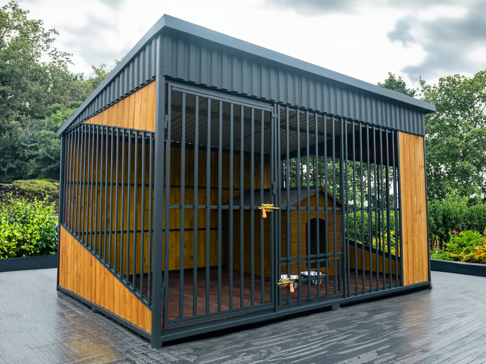 Kojec dla dużego psa 3x2m z budą, podłogą, miskami i zabudową ścian