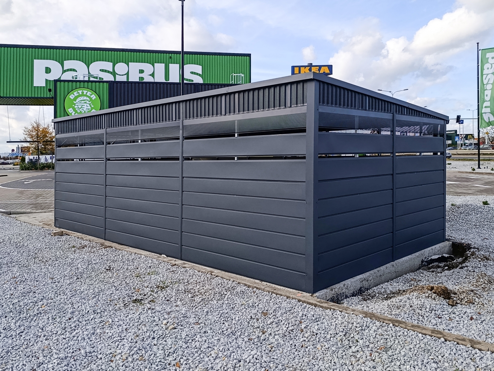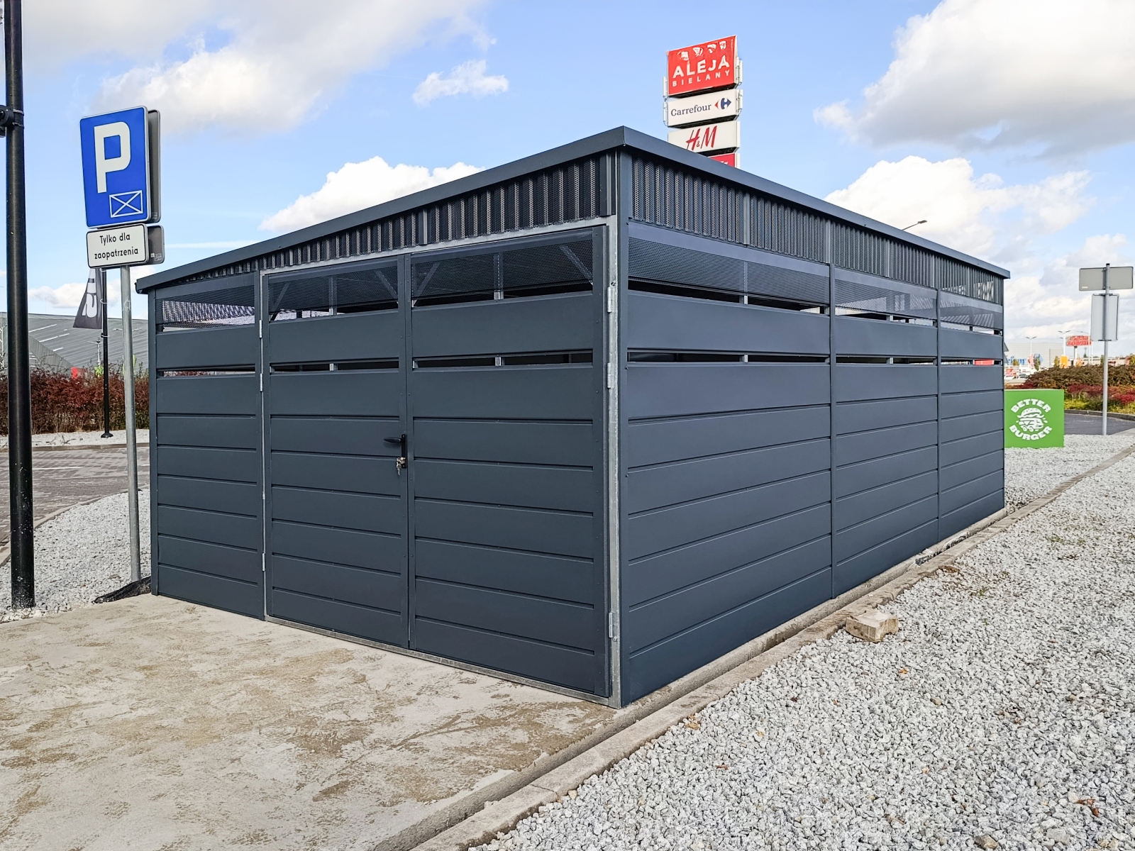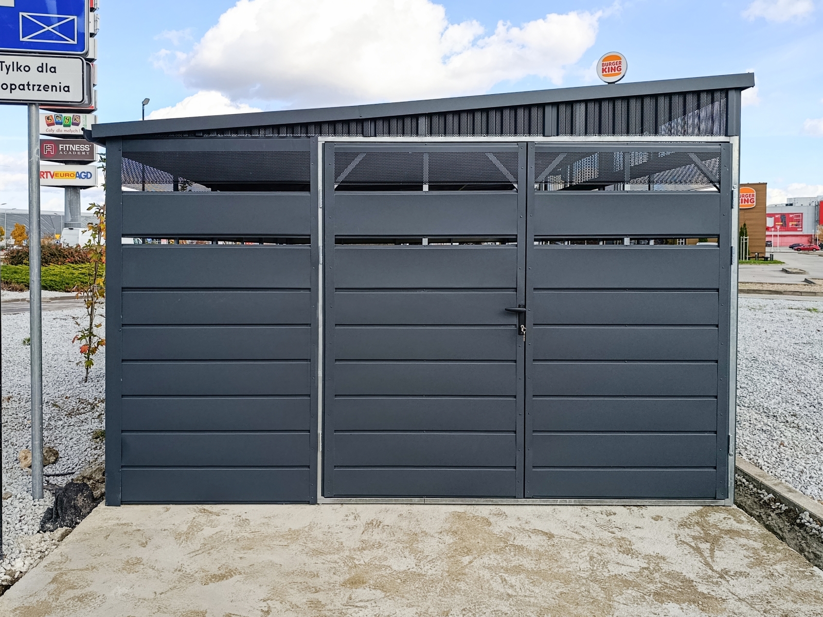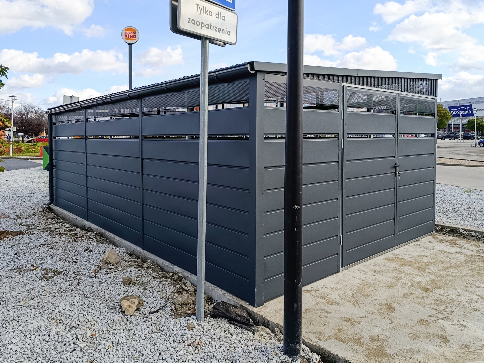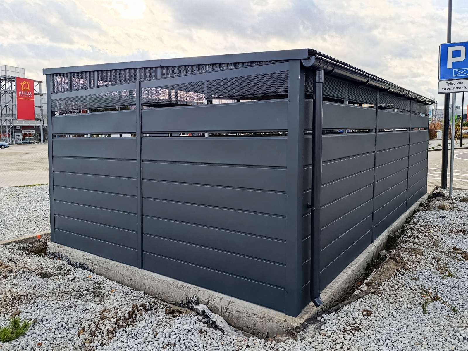 Zabudowa na śmietniki / Wiata śmietnikowa 4 x 6,5 m, matowy grafit, spad na lewo
