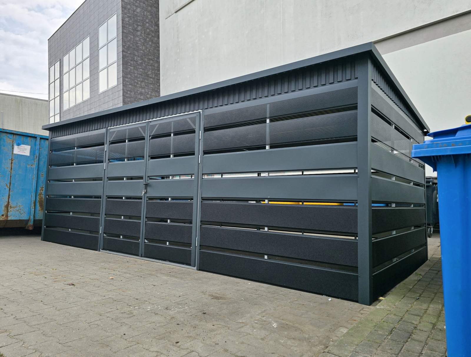 Wiata śmietnikowa, zabudowa na śmietniki 6x3m, czerń + grafit